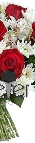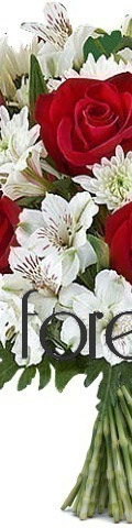 6 x Red Roses, White Alstroemeria, White Chrysanthemums
