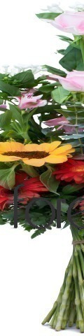 3 Sunflowers, 3 Pink Roses, 3 Red Gerbera, Pink Alstromeria, White Bouvardia